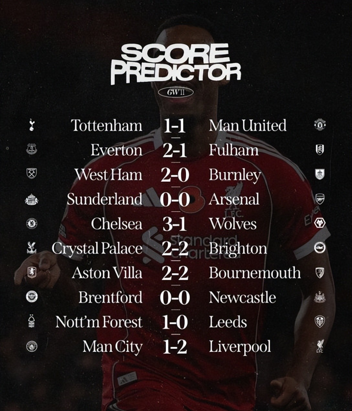 就在赛前,足球媒体Sports Illustrated FC、《体育画报》也对于本轮英超给出了比分的预测。而在这其中很容易看到的就是,平局场次激增、5场比赛或有可能最终呈现平局的结果。