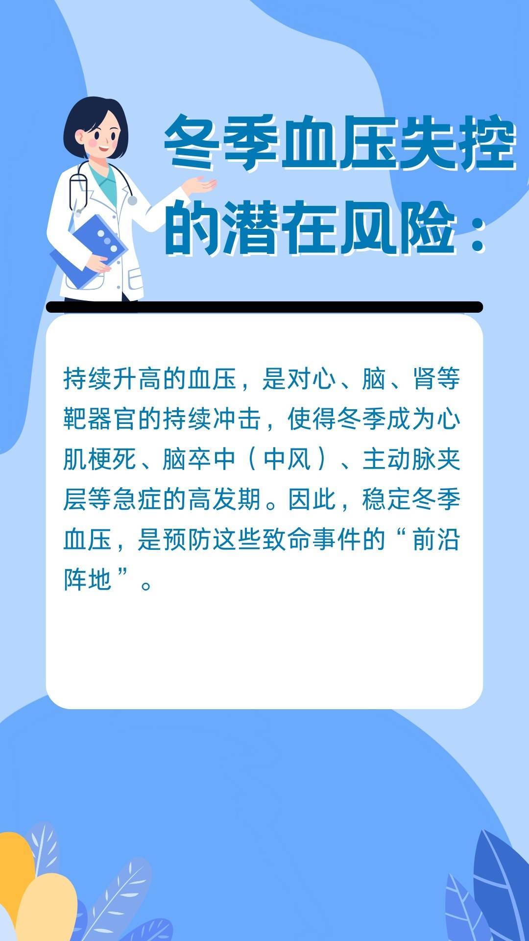 随着气温持续走低,高血压患者迎来了血压波动的 “敏感期”。 血压一波动,心脑血管出问题的风险也会跟着涨。今天就给大家整理了一份实在的稳压攻略,从日常监测到穿衣吃饭都有讲究,帮你稳稳度过这段冷日子。